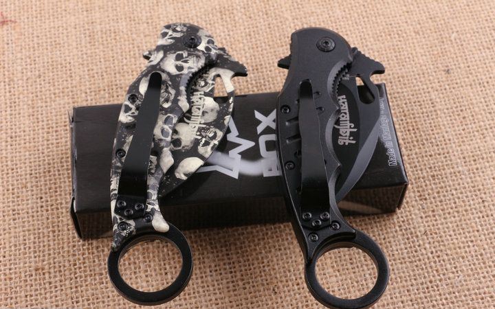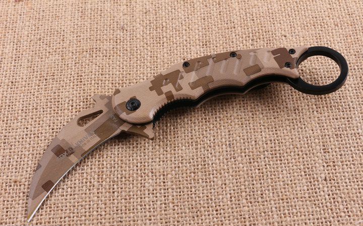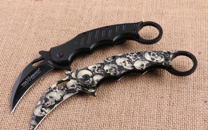 FOX狐狸FA30快开爪刀 全 长:204mm 刃 长:68mm 柄 长:130mm 刃 宽:25mm 刃 厚:2.8mm 刃 材:5Cr15Mov 重 量:149g(含包装) 硬 度:57HRC 表 面:有黑钛 有披履 柄 材:钢柄+披履G10 锁 型:快开 其 他:配彩盒