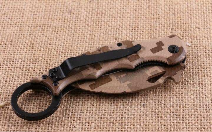 FOX狐狸FA30快开爪刀 全 长:204mm 刃 长:68mm 柄 长:130mm 刃 宽:25mm 刃 厚:2.8mm 刃 材:5Cr15Mov 重 量:149g(含包装) 硬 度:57HRC 表 面:有黑钛 有披履 柄 材:钢柄+披履G10 锁 型:快开