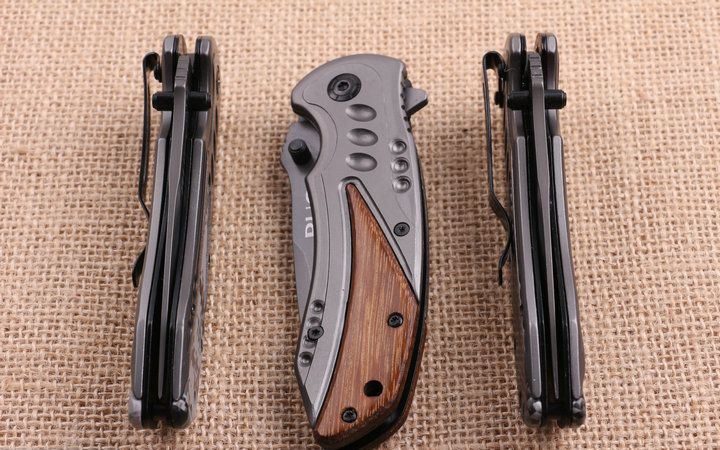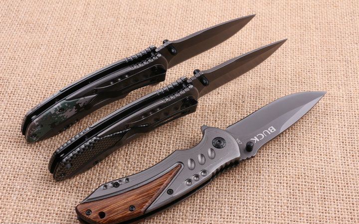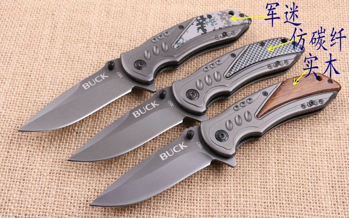 巴克x57快开折刀 全 长:200mm 刃 长:85mm 柄 长:114mm 刃 宽:28mm 刃 厚:2.9mm 刃 材:5Cr13 重 量:131g(含包装) 硬 度:57HRC 表 面:镀钛 柄 材:酸枝木 锁 型:快开