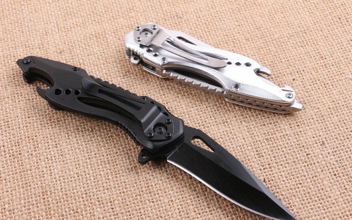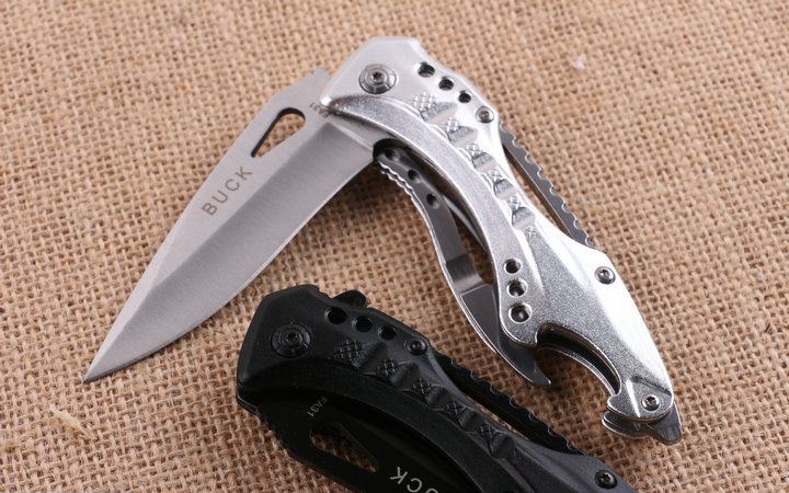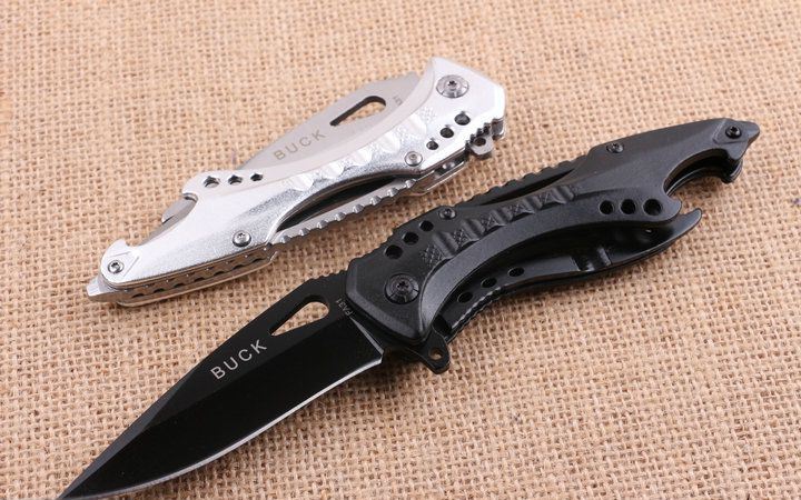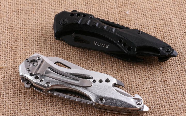 巴克JL077BK全刃快开折刀 全长;20.5cm 刃长:8.5cm 柄长:12.0cm 刃厚:0.29cm 刃宽:2.8cm 刃材:3CR13 柄材:钢片+铝片 硬度:57HRC 净重:150克(含包装) 锁定:线锁 表面处:银白色+黑色。下单注明颜色 其他:原厂彩盒,内置开瓶器和一字批