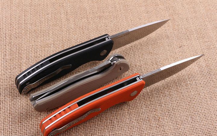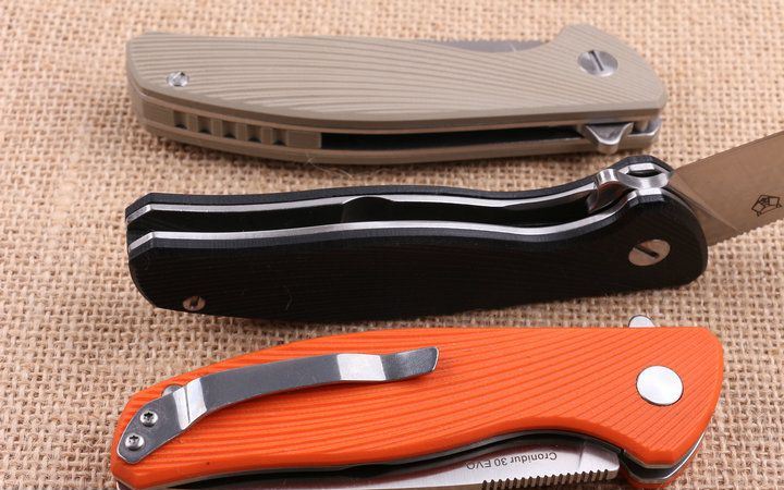 熊头PA90S钢锁折刀三色 全 长:22.1cm 刃 长:9.5cm 柄 长:12.8m 刃 宽:3.0cm 刃 厚:3.mm 刃 材:5CR15MOV 重 量:230g (含包装物) 硬 度:56-58HRC 表 面:精细沙光 柄 材:手柄G10和钢片经CNC精雕加工 刀 夹:不锈钢 锁 型:线锁 结 构:线锁结构,内置平面滚针轴承垫片