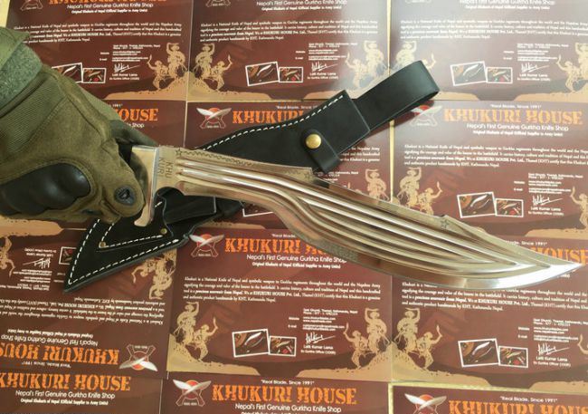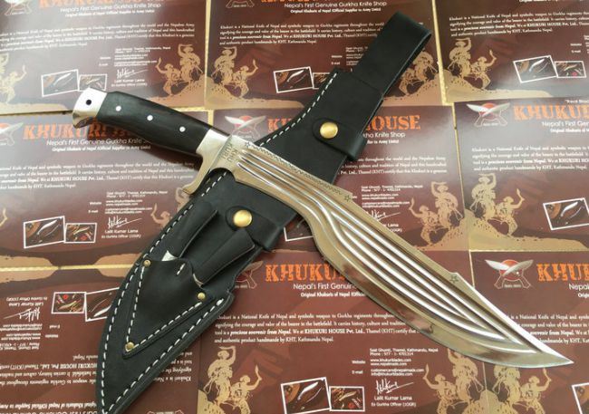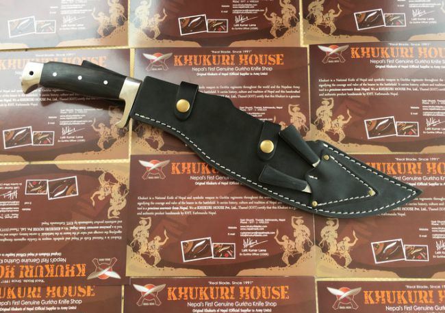 尼泊尔重型开山刀全镜面 全长:44.8cm 刃长:31.7cm 柄长:13.2cm 厚度:5.5mm 硬度:60-61 钢材:进口高碳钢 柄材:黑檀木 表面:超镜光(一体龙骨) 单刀重量:730g 总重量含包装:960g 刀鞘:牛皮刀鞘 尼泊尔重型开山刀全镜面此刀全手工制作一体龙骨,不要拿普通的刀来对比(老鼠尾手柄)不是一个档次的,我们秉承“高质优品”之宗旨,在选料时不惜成本,制作时精益求精,每一把都精品