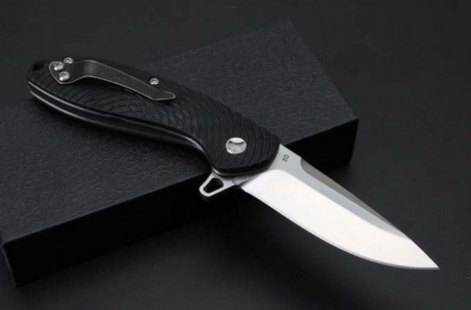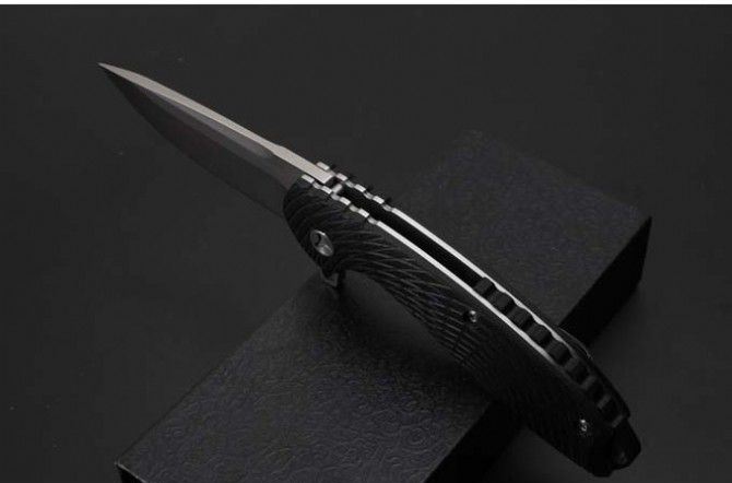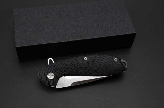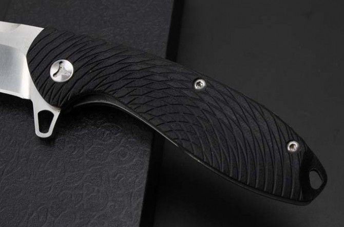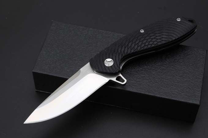 蜘蛛侠D2钢轴承快开折刀 全 长:194mm 刃 长:82mm 柄 长:115mm 刃 宽:27mm(最宽处) 刃 厚:4mm 刃 材:D2钢 重 量:223g(含包装) 硬 度:58-59HRC 表 面:数控磨 沙光 柄 材:钢+G10 其 他:滚珠轴承系统 包 装:礼品盒