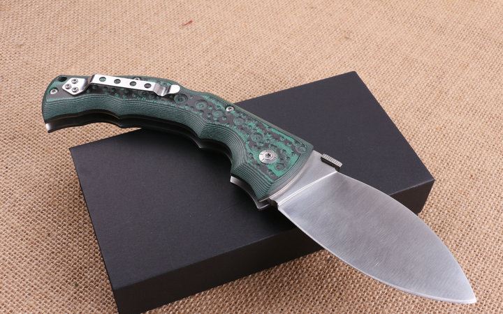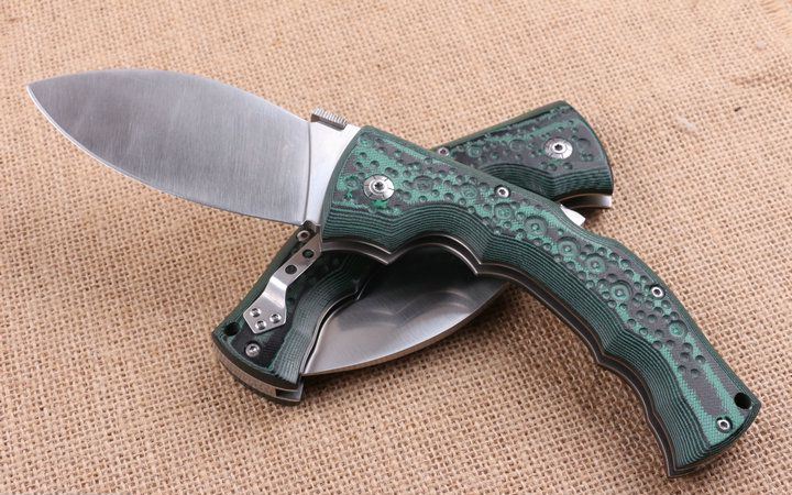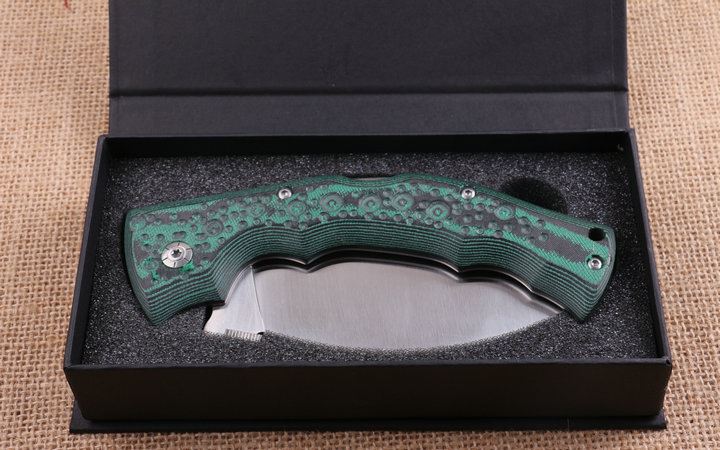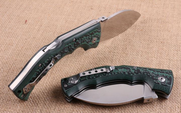 冷钢大头儿九尾狐狗腿折刀 全长:25.0cm 刃长:10.7cm 柄长:15..0cm 刃厚:0.46cm 刃宽:3.2cm 刃材:5CR15MOV 柄材:米卡塔 硬度:57HRC 净重:430克(含包装) 锁定:背锁 表面处:沙光 其他:原厂黑色礼品盒