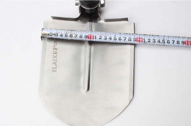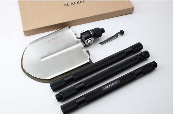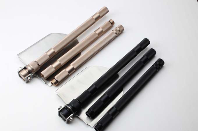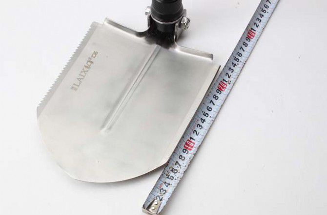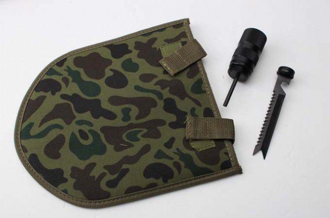 睐斯C6加长大号多功能铲(金、黑) 全 长:1430mm 刃 长:238mm 柄 长:1180mm 刃 宽:190mm 刃 厚:2.1mm 刃 材:5Cr13Mov 重 量:2659g(含包装) 硬 度:57HRC 表 面:砂光 柄 材:钢柄 锁 型:3节 可反接 其 他:配件丰富,手工精巧,不多说用过你就明,迷彩牛津布袋子,方便折叠