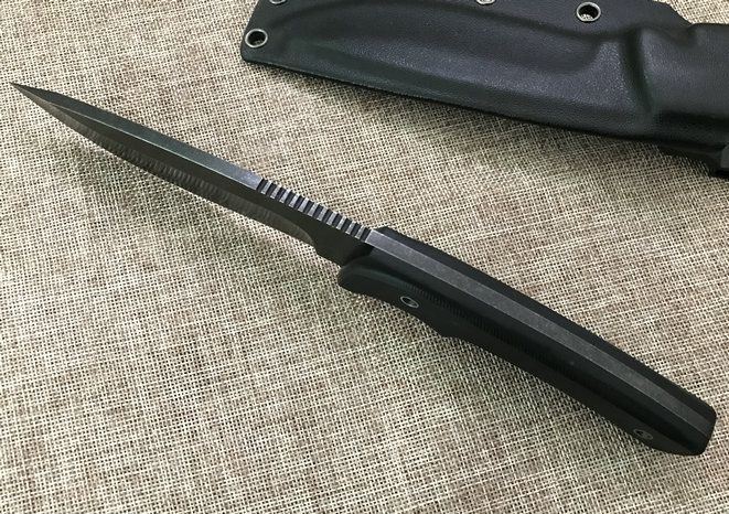 托德无名者直刀 全 长: 26CM 刀 长: 12CM 刃 材: 9CR高级不锈钢 刃 宽: 3CM 硬 度: 58-60HRC 表 面: 石洗 刃 厚: 0.45CM 柄 材: G10 重 量: 500G 附 件: 配K鞘