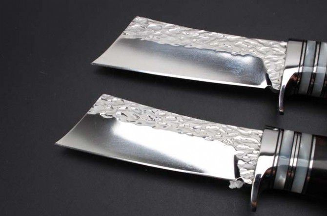小武士锻打手工刀黑檀木、红酸枝 全 长: 22.5cm 刃 长: 9.8cm 刃 宽: 3.5cm 刃 厚: 4mm 柄 长: 10cm 刃 材: 9CR18MOV(锻打) 硬 度: 58-60HRC 净 重: 130g 总 重: 160克(含皮套) 表 面: 大马士革花纹 柄 材: 黑檀木和红酸枝两种 其 他: 牛皮刀套