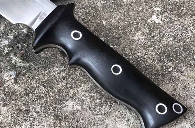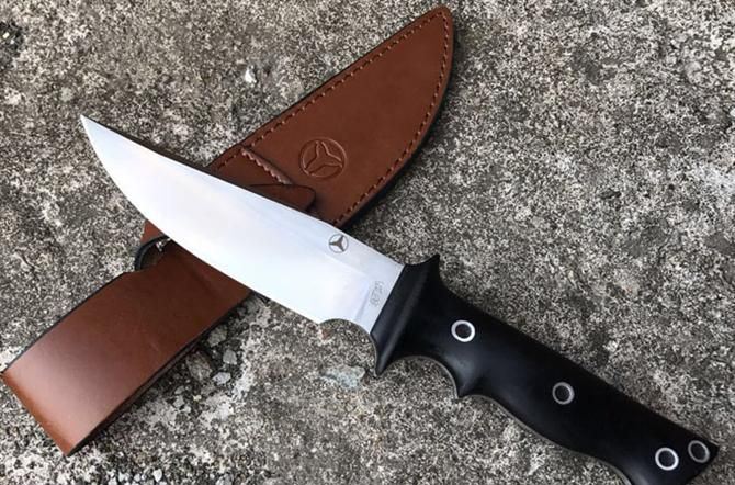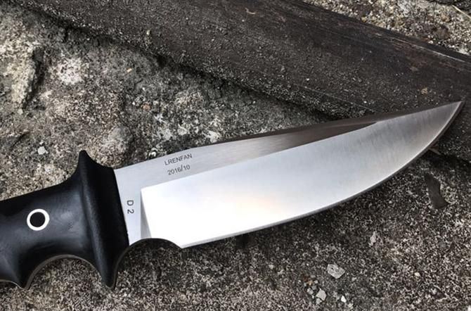 浪刃坊尖之刃直刀 全长: 290mm 刃长: 152mm 厚度: 4.9mm 刃宽: 40mm 硬度: 60-61HRC 表面: 拉丝 刃材: D2 手柄: G10 包装: K-Sheath 重量: 400g(含套)