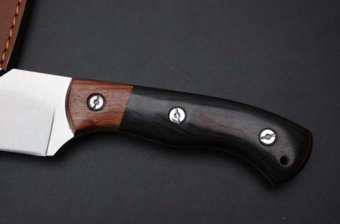 迈克安德森屠龙砍刀 全 长:43.5cm 刃 长:29cm 柄 长:14.5cm 刃 厚:6mm 刃 宽:5.3cm 刃 材:7Cr13 柄 材:木柄龙骨结构 硬 度:58HRC 毛 重:1042克(含包装物) 表 面处理:沙光