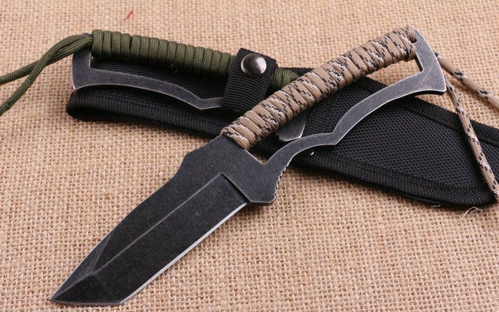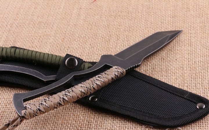 黑魂鲸沙直刀 全长:21.5cm 刀刃:11cm 刃厚:0.29cm 刃宽:3.0cm 柄长:10.5cm 硬度:58HRC 净重:160g 材料:5CR15MOV 柄材:一休龙骨,内绕1.1米迷彩绳了,可以受230KG力,户外必备 锁型:直锁