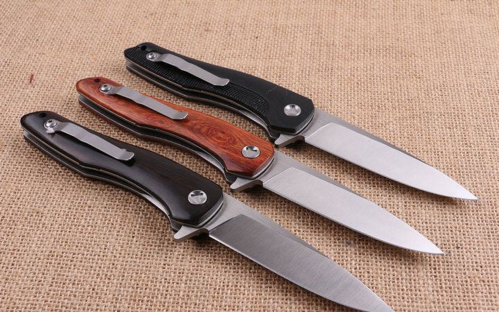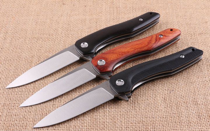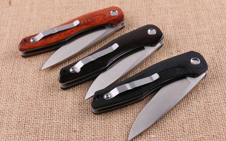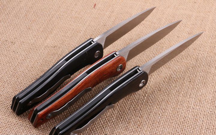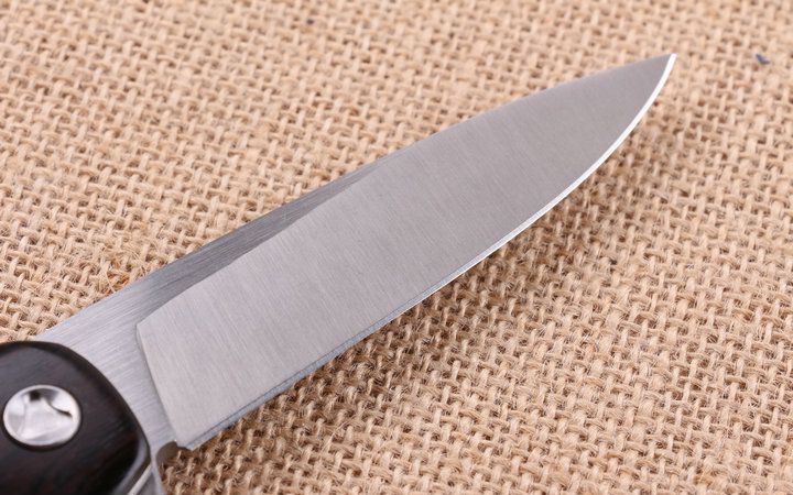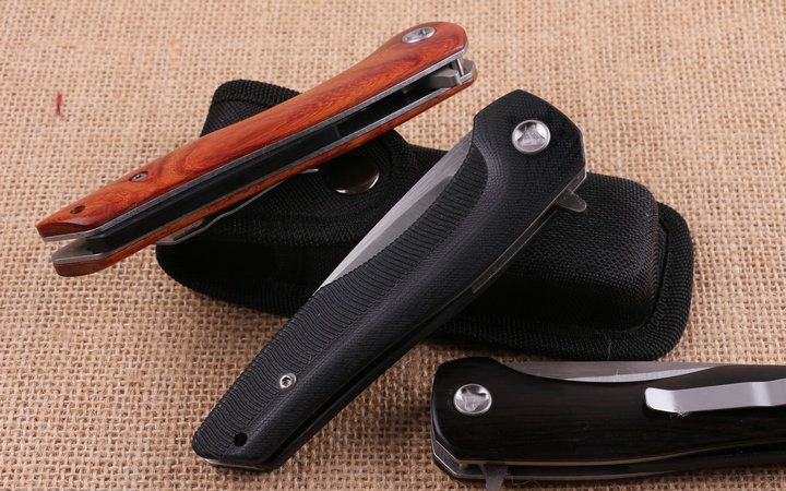 高端活塞折刀 全长;23.2cm 刃长:10.3cm 柄长:12.9cm 刃厚:0.88cm 刃宽:2.6cm 刃材:5CR15MOV 柄材:钢片+(黑G10+花酸枝木+黑檀木)三款任选,下单注明。 硬度:57HRC 净重:210克(含包装) 锁定:线锁 表面处:精细拉丝,高品质 其他:原厂黑盒 +优质尼龙套