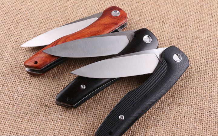 高端活塞折刀 全长;23.2cm 刃长:10.3cm 柄长:12.9cm 刃厚:0.88cm 刃宽:2.6cm 刃材:5CR15MOV 柄材:钢片+(黑G10+花酸枝木+黑檀木)三款任选,下单注明。 硬度:57HRC 净重:210克(含包装) 锁定:线锁 表面处:精细拉丝,高品质