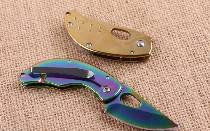 博克F87小折刀彩钛、金色 全长:12.5cm 刃长:5.1cm 柄长:7.5cm 刃厚:0.25cm 刃宽:2.8cm 刃材:440C 柄材:全负 硬度:57HRC 净重:70克(含包装) 锁定:线锁 表面处:彩钛和金色两款,下单注明