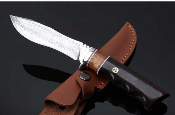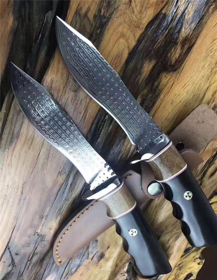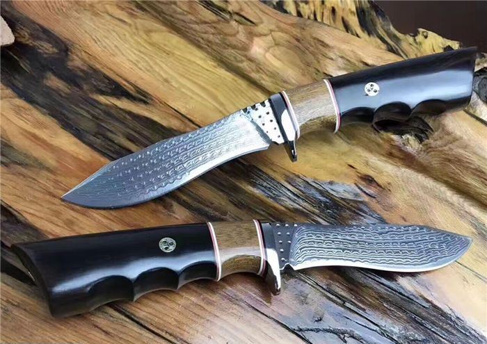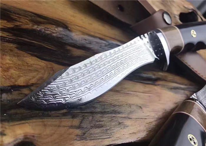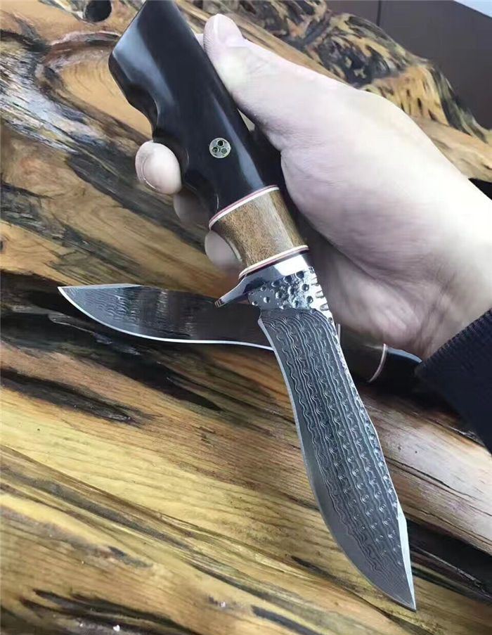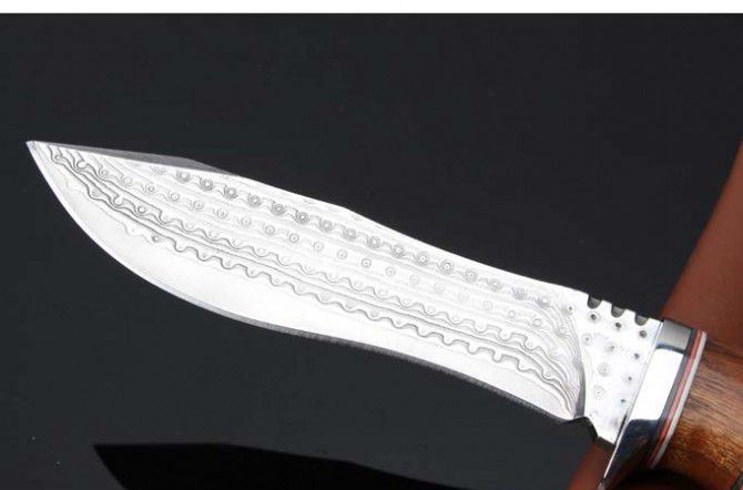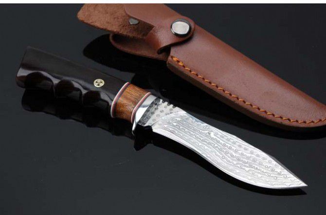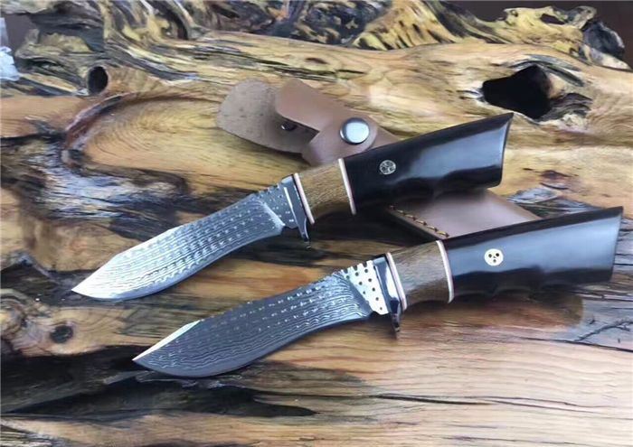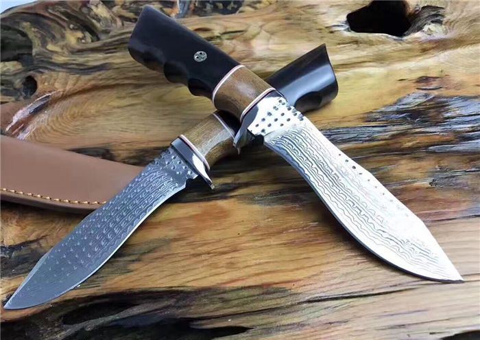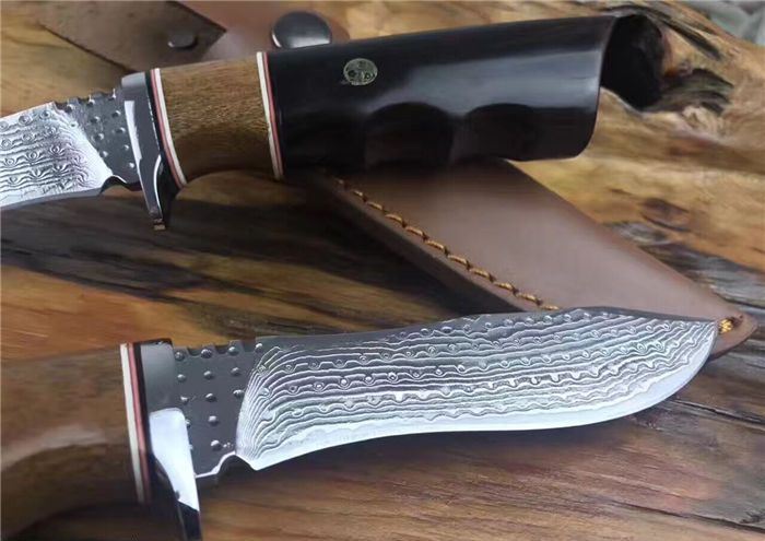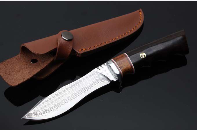 大马士革追月直刀 全 长:23cm 刃 长:11.8cm 刃 宽:2.7cm(最宽处) 刃 厚:4mm 柄 长:11cm 表 面:锻打大马士革花纹 刃 材:大马士革钢 硬 度:59HRC 柄 材:钢头+檀木 重 量:171克(含包装) 包 装:皮套、 其 他:刃口锋利 大马士革钢花纹和把手木纹及颜色各异,以实物为准