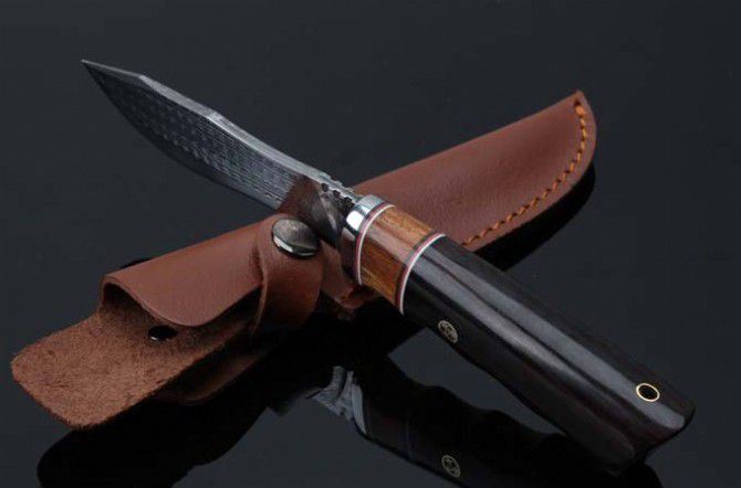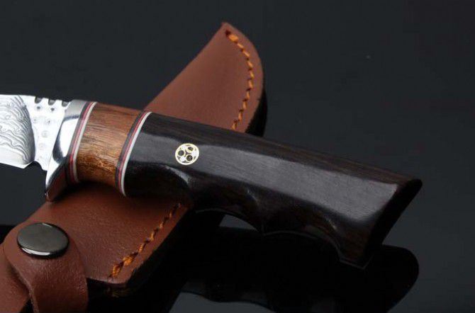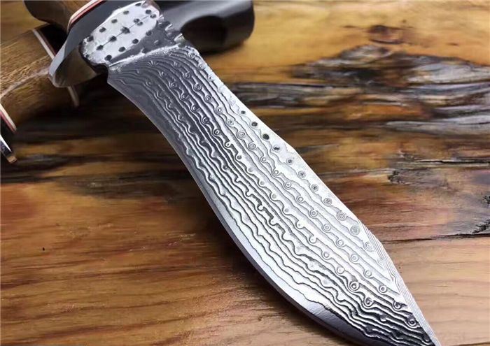 全 长:23cm 刃 长:11.8cm 刃 宽:2.7cm(最宽处) 刃 厚:4mm 柄 长:11cm 表 面:锻打大马士革花纹 刃 材:大马士革钢 硬 度:59HRC 柄 材:钢头+檀木 重 量:171克(含包装) 包 装:皮套、