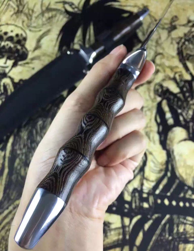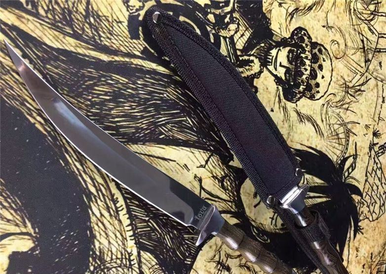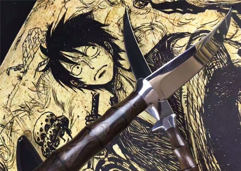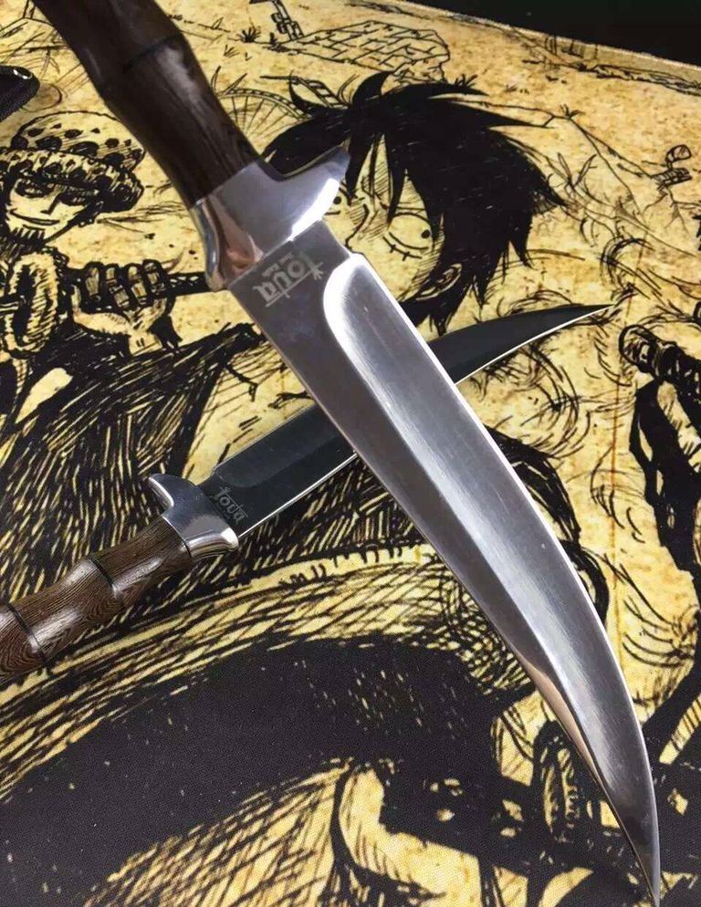 全 长:31.6cm 刃 长:18.4.0cm 柄 长:13.2cm 刃 宽:2.5cm(最宽处) 刃 厚:3.2mm 刃 材:420 硬 度:56HRC 刀 柄:双钢头+酸枝 表 面:镜光 毛 重:150.0克