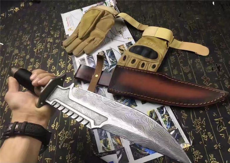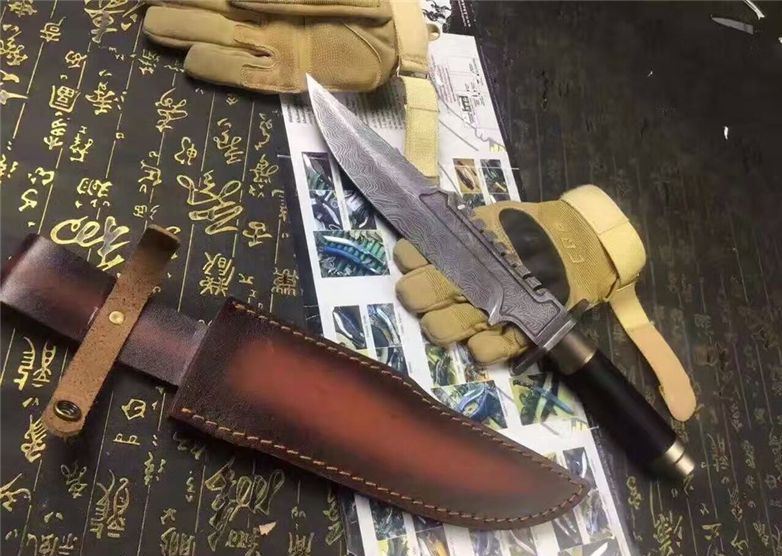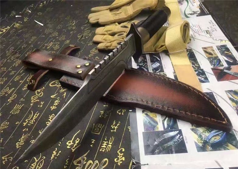 全 长:38.5CM 刃 长:25CM 柄 长:13.5CM 刀 厚:0.58CM 刃 面:腐蚀纹 毛 重:约600克(含刀鞘) 钢 材:9cr18mov钢 硬 度:59HRC(真空油冷热处理) 柄 材: 高档军绳