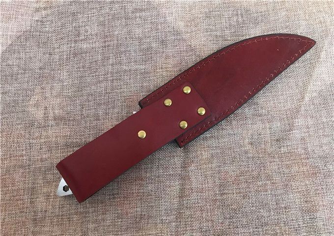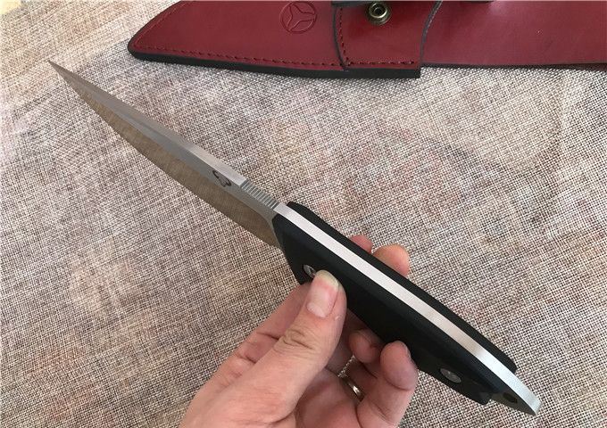 浪刃坊公牛直刀 全长: 290mm 刃长: 152mm 厚度: 4.9mm 刃宽: 40mm 硬度: 60-61HRC 表面: 拉丝 刃材: D2 手柄: G10 包装: K-Sheath 重量: 400g(含套)