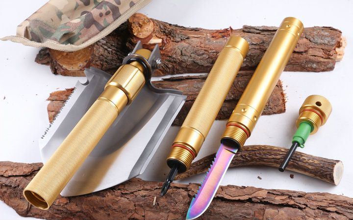 功能:有铲,锄 ,锯,刀,开瓶器,打火棒,指南针等功能,在生产工艺上采用上好淬火高碳钢,增加强度,抗磨损,抗腐蚀,耐高温等优势.有把铲在手,登山,外出永不怕
