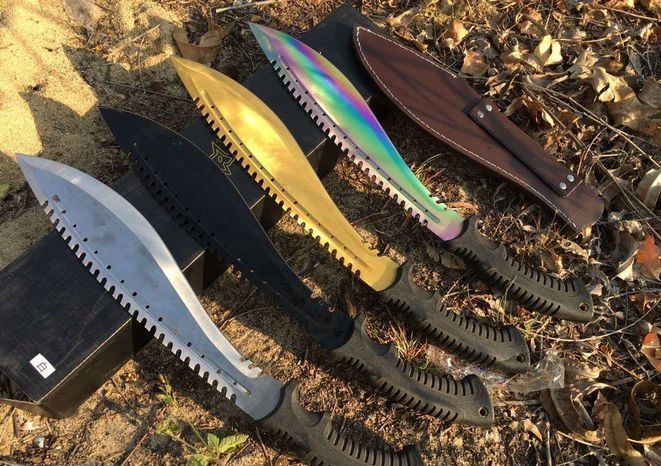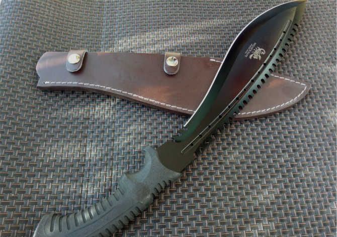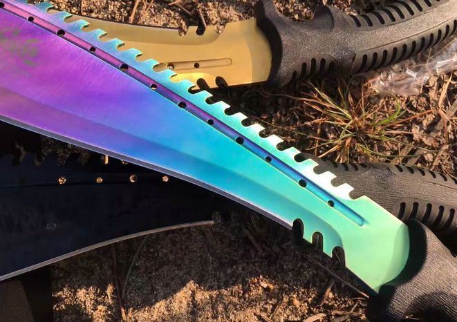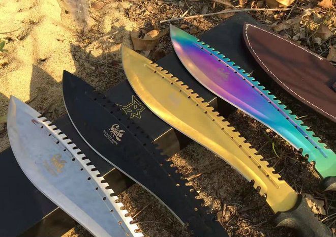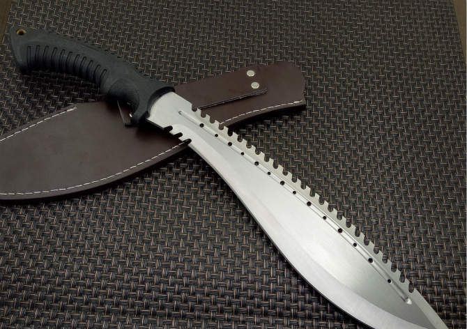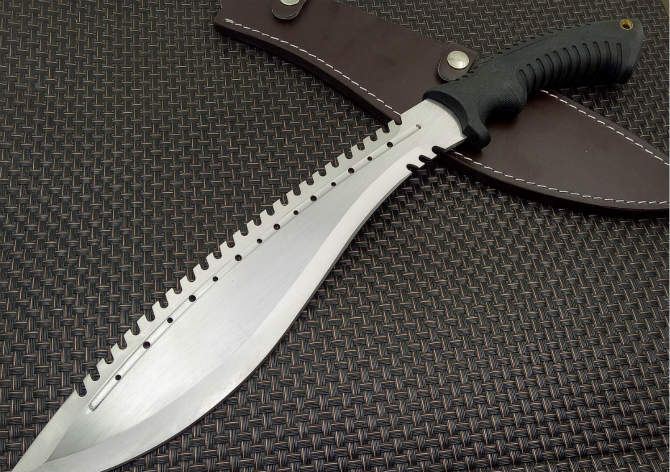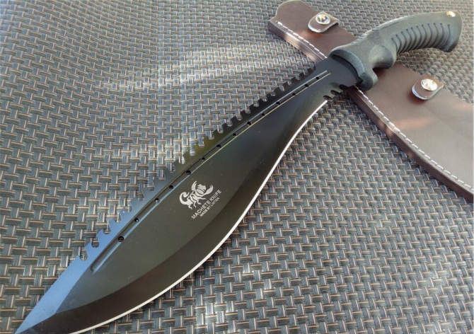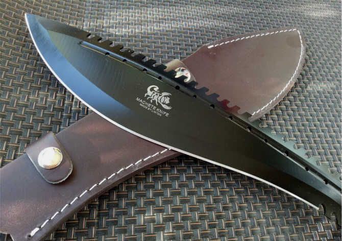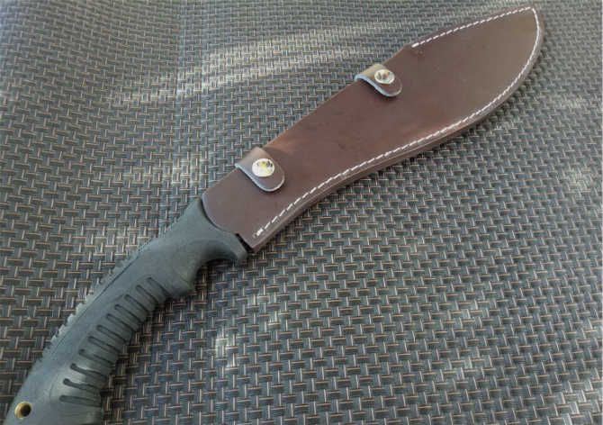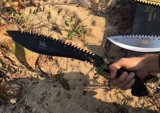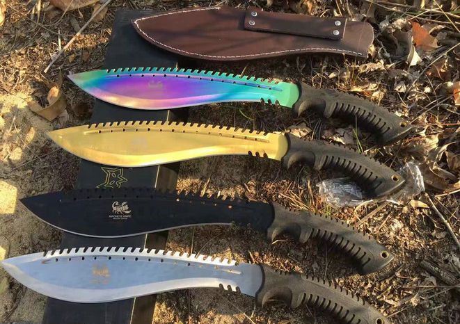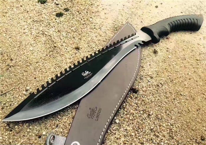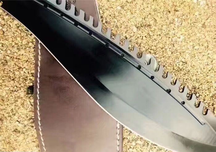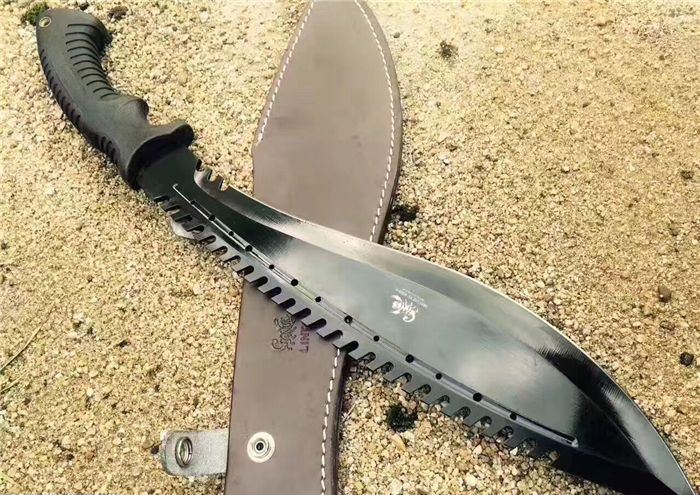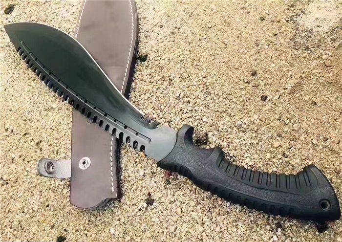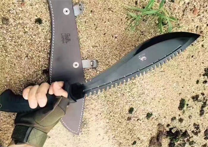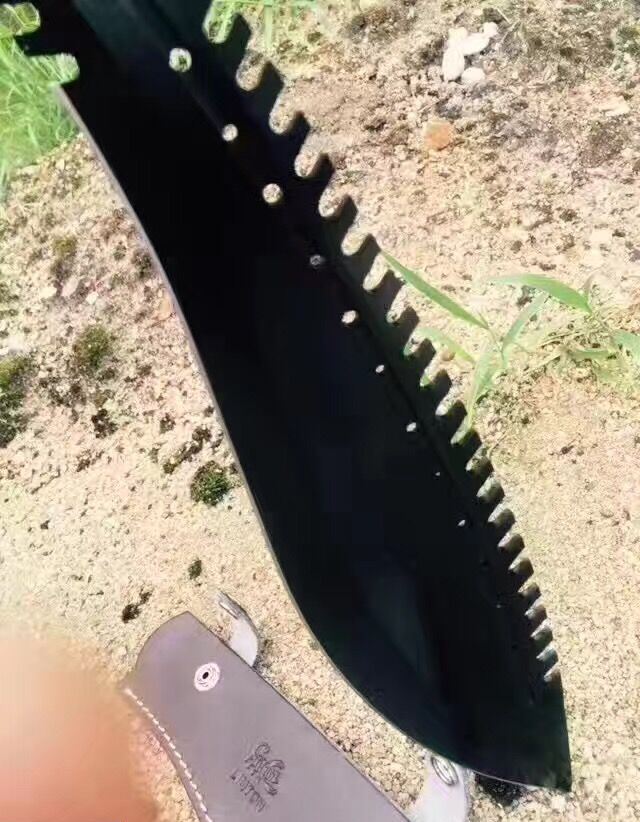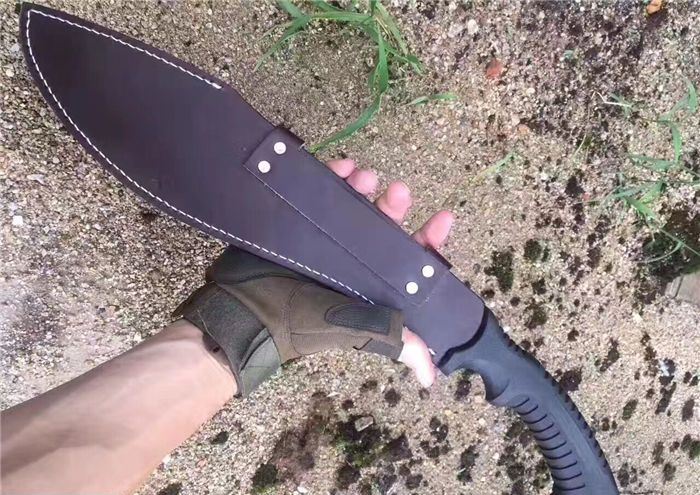 破灭王蝎子龙狗腿刀 全 长:50cm 刃 长:34cm 柄 长:14.7cm 刃 宽:6.8cm 刃 厚:0.41cm 刃 材:7Cr17Mov 重 量:967g(含包装) 柄 材:ABS