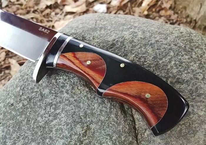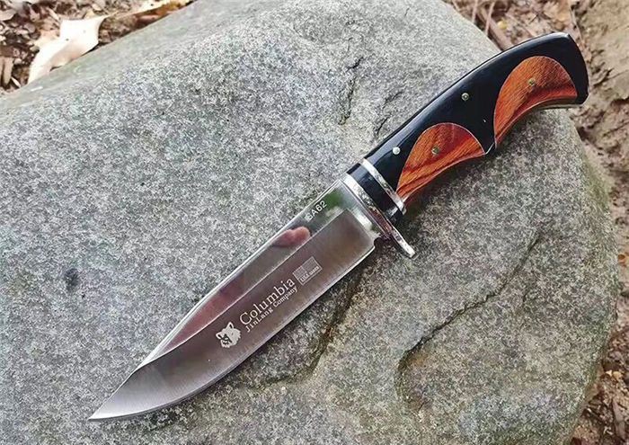 哥伦比亚SA62战术直刀 全 长:31.5cm 刃 长:18cm 刃 宽:3.6cm(最宽处) 刃 厚:3.9mm 柄 长:13.5cm 表 面:拉丝+镜光 刃 材:CR13 硬 度:57HRC 柄 材:双钢头雕花+进口彩木 重 量:376克(含包装) 包 装:尼龙套