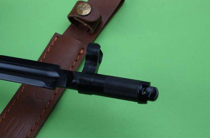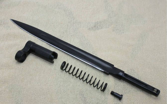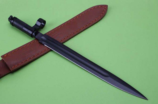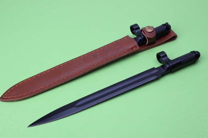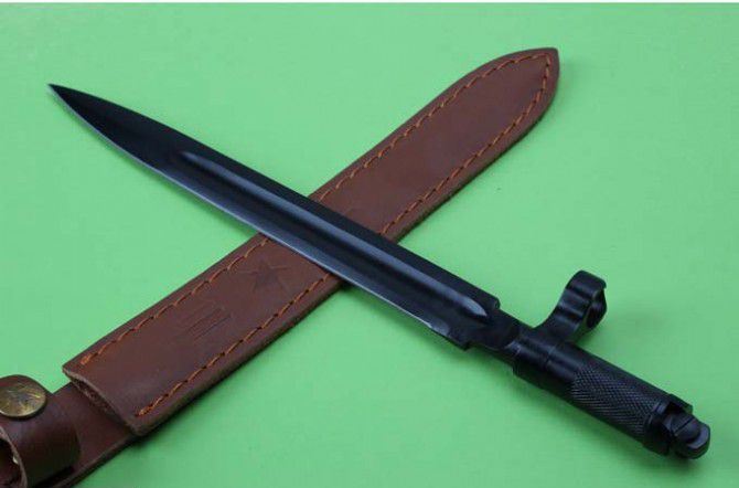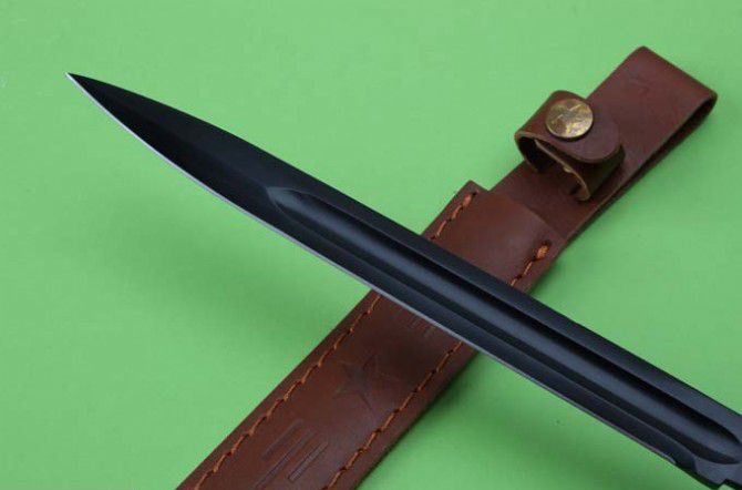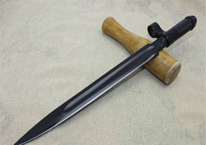 黑钛色国产56式扁形枪刺开刃版 材质:合金钢 硬度:60HRC 类型:军刀 全长:31厘米 厚度:0.5厘米 宽度:2.0厘米 产地:中国 此刀用合金钢锻压打造而成,钢材的硬度在60HRC以上。 整刀经过热处理,硬度极高,可穿透普通的防刺服。 刀身经过去光处理,刀身呈全黑色