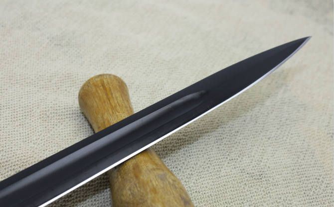 材质:合金钢 硬度:60HRC 类型:军刀 全长:31厘米 厚度:0.5厘米 宽度:2.0厘米 产地:中国 此刀用合金钢锻压打造而成,钢材的硬度在60HRC以上。 整刀经过热处理,硬度极高,可穿透普通的防刺服。 刀身经过去光处理,刀身呈全黑色