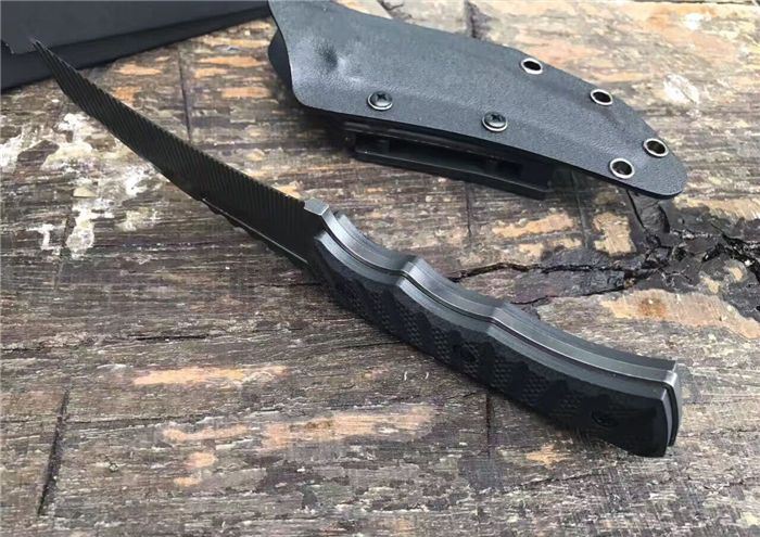 全 长:21m 刃 长:10.3cm 柄 长:10.7cm 刃 宽:0.31cm 刃 厚:0.55cm 刃 材:D2 重 量:220g 硬 度:58HRC 表 面:沧桑石洗 柄 材:黑色G10 其 他:礼品盒+K鞘