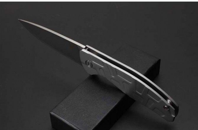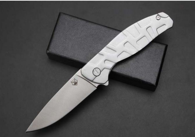 全 长:22.8cm 刃 长:10.1cm 刃 宽:2.8cm(最宽处) 刃 厚:3.8mm 柄 长:12.8cm 表 面:全钛 刃 材:440C 硬 度:57HRC 柄 材:全钢 重 量:200克(含彩盒子) 锁 闭:线锁 备 注:带腰夹