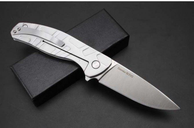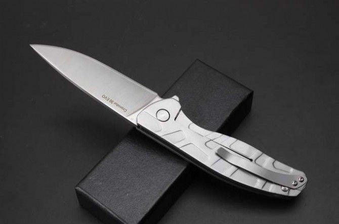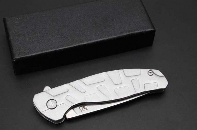 熊头钢柄折刀 全 长:22.8cm 刃 长:10.1cm 刃 宽:2.8cm(最宽处) 刃 厚:3.8mm 柄 长:12.8cm 表 面:全钛 刃 材:440C 硬 度:57HRC 柄 材:全钢 重 量:200克(含彩盒子) 锁 闭:线锁 备 注:带腰夹