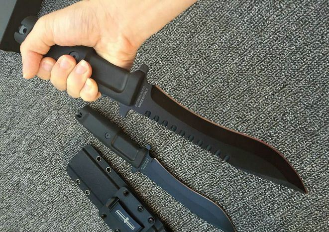 全 长: 32cm 刃 长: 17cm 柄 长: 13cm 刃 厚: 5mm 刃 材: 5CR13MOV 硬 度: 57HRC 表 面: 黑钛 柄 材: 橡塑 刀 鞘: ABS