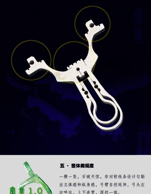 快乐弹弓秦皇1.0 快乐弹弓生产的 秦皇1.0怀旧版终身保真 高级304不锈钢弓身 手工镜面抛光 上手快 精度高 非常适合竞技玩家(详细数据看图片介绍)