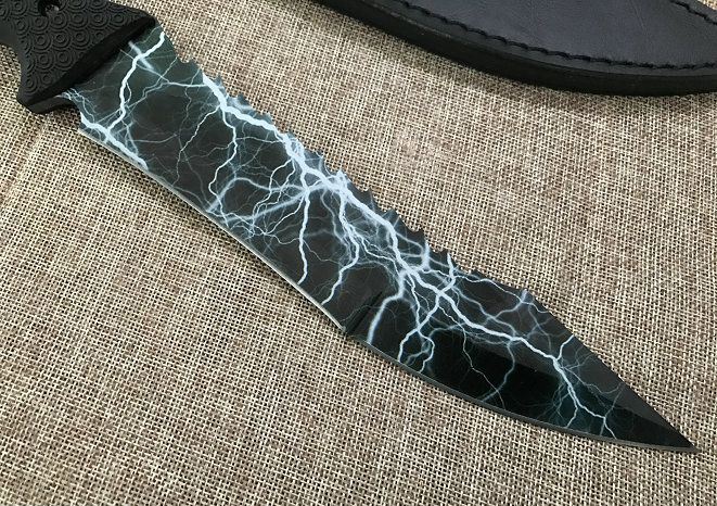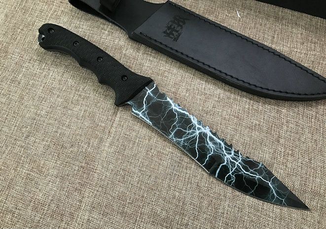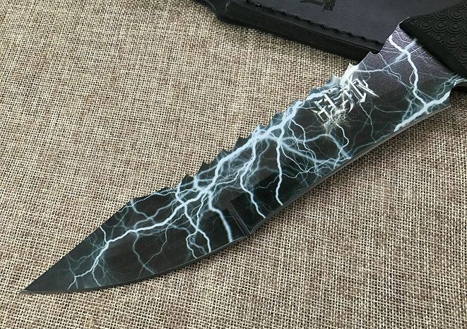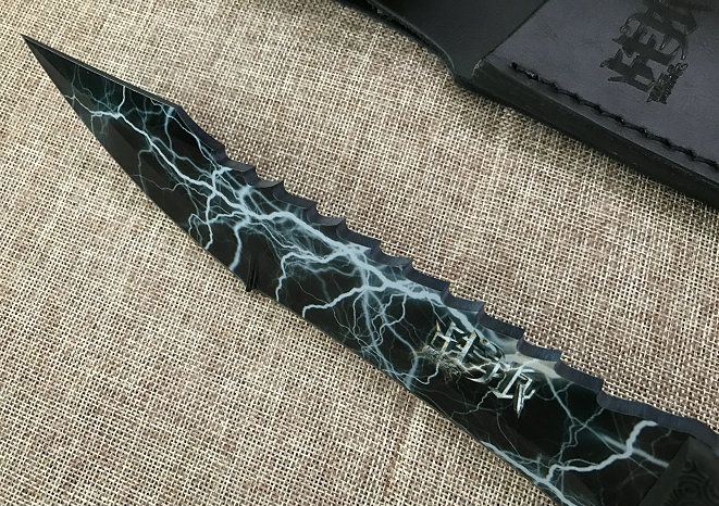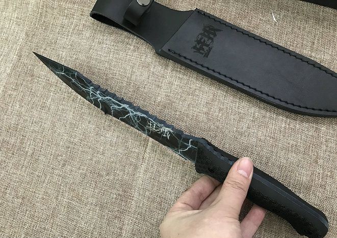 战狼虎牙突击闪电刀 全 长: 37CM 刀 长: 22CM 刀 柄: 15CM 刃 材: 9CR18MOV 刃 宽: 5.5CM 刃 厚: 0.5CM 硬 度: 58-60HRC 表 面: 3D喷塑 柄 材: ABS 重 量: 454g 附 件: 产品锋利无比,配头层皮套+礼品盒