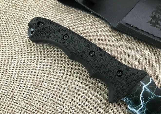 全 长: 37CM 刀 长: 22CM 刀 柄: 15CM 刃 材: 9CR18MOV 刃 宽: 5.5CM 刃 厚: 0.5CM 硬 度: 58-60HRC 表 面: 3D喷塑 柄 材: ABS 重 量: 454g 附 件: 产品锋利无比,配头层皮套+礼品盒