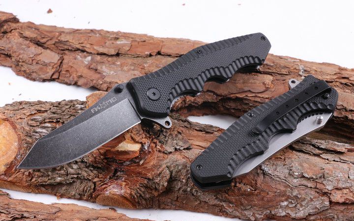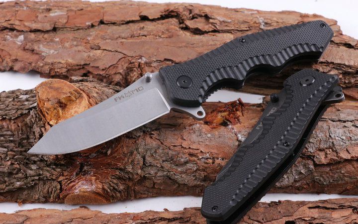 狐狸FOX老窝折刀 全长:21.8cm 刃长:9.5cm 柄长:12.3cm 刃厚:0.35cm 刃宽:3.1cm 刃材:5CR15MOV 柄材:钢片+防滑G0片 硬度:57HRC 净重:250克(含包装) 锁定:线锁 滚动系统:轴承 表面处:灰钛和石洗,下单注明 其他:原厂礼品盒