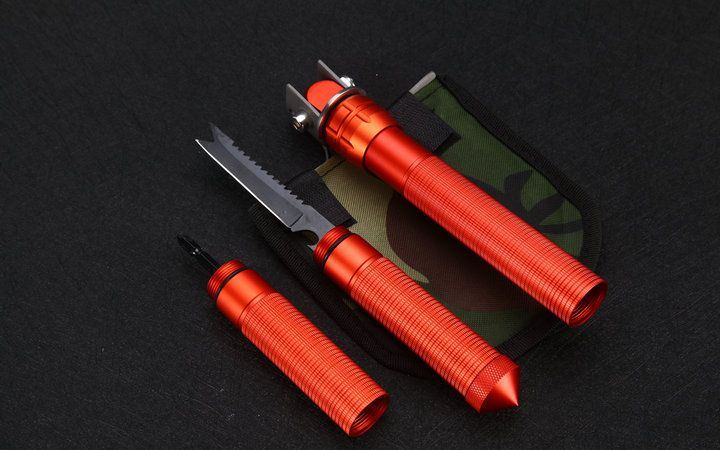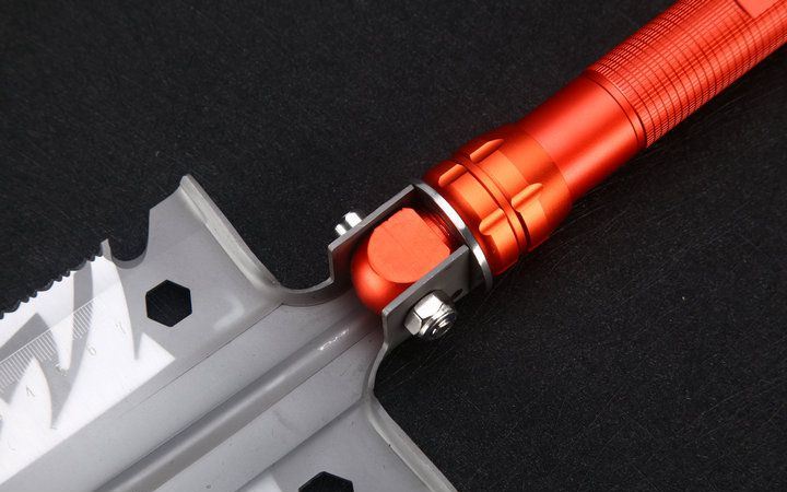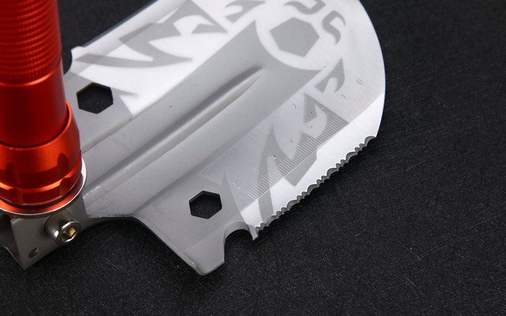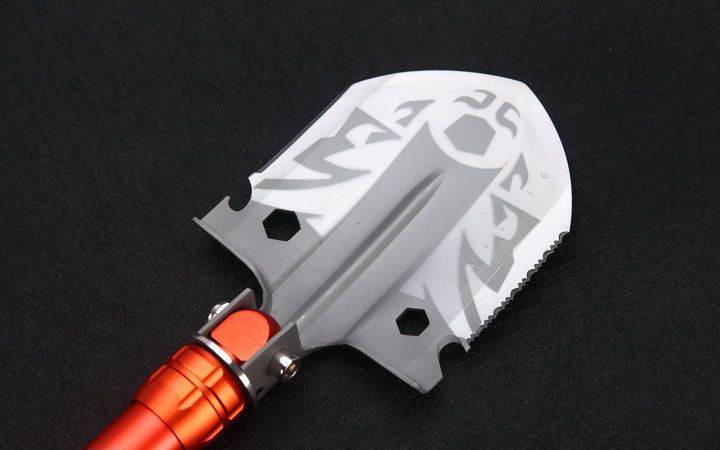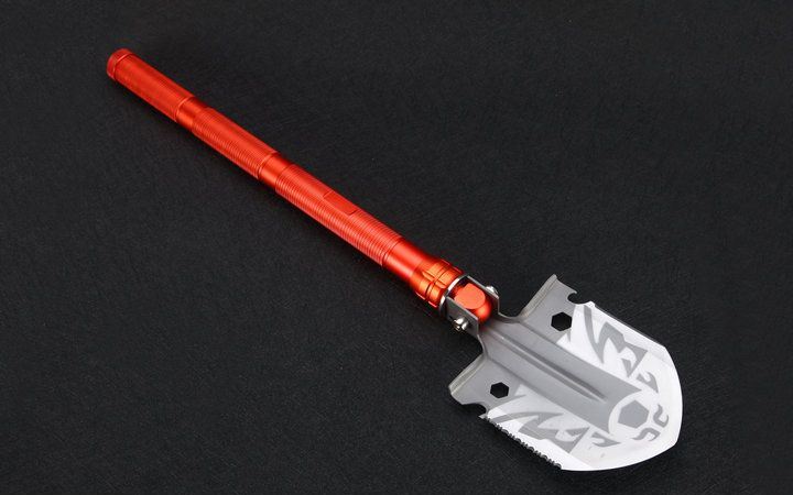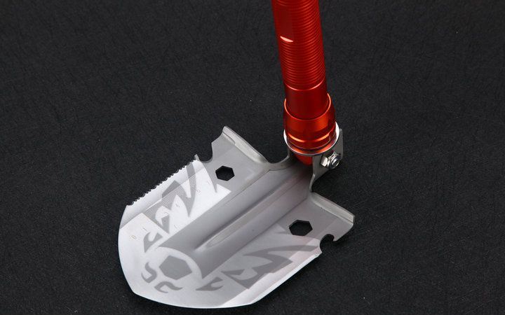 自由狼MX1网纹柄多功能铲小号直型橙色 伸展长度:58.5cm 折叠长度:43.7cm 锹面尺寸:14.5*12.5cm 刀刃长度:6.5cm 厚度:2.1mm 重量:1100约g (含包装物) 刃材:进口不锈钢 柄材:加厚航空铝材+啡色 包装:迷彩牛津布袋子,可挂腰上 特点:手柄拉分开三折,方便外出,安装简便 功能:有铲,锄 ,锯,刀,开瓶器,打火棒,撞击器,一字十字螺批等功能,在生产工艺上采用上好淬火高碳钢,增加强度,抗磨损,抗腐蚀,耐高温等优势.有把铲在手,登山,外出永不怕