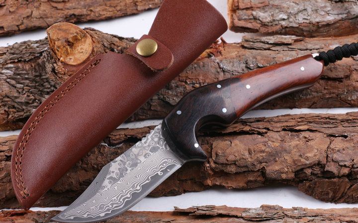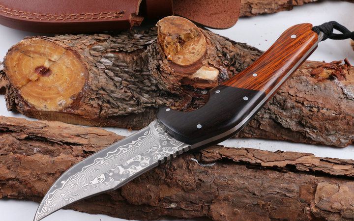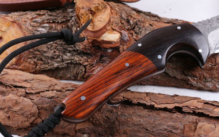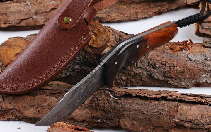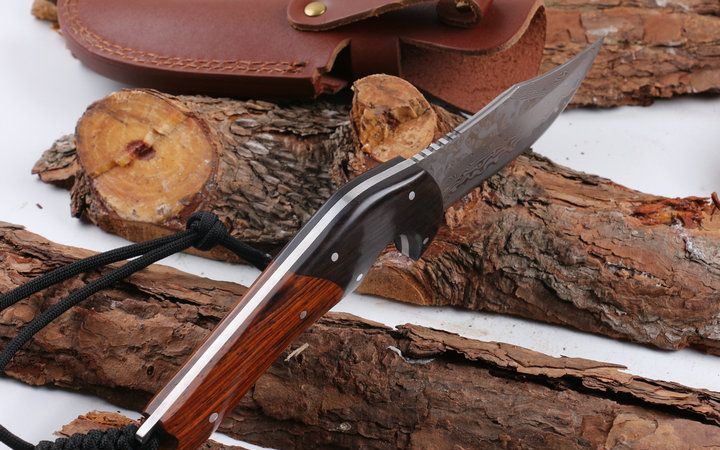 黑公牛大马士革收藏直刀 全 长: 22.8cm 刃 长: 9.8cm 柄 长: 13.0cm 刃 厚: 3.3mm 刃 材: 进口大马士革 硬 度: 56-58HRC 总 重: 180克 净 重: 370克 表 面: 大马士革原有纹 柄 材: 花酸枝木+天然黑檀木,高档漂亮 刀 鞘: 皮套 其 它: 刀口锋利.手工制作.值得收藏