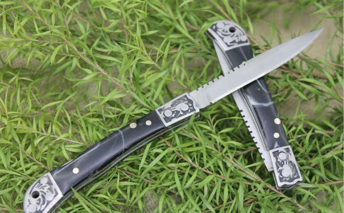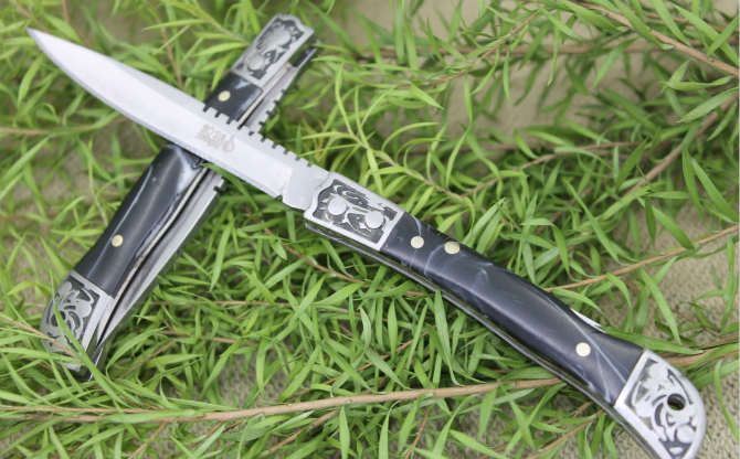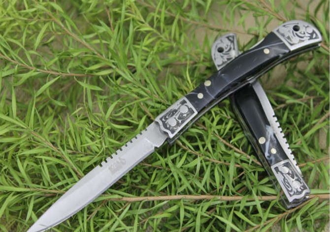 袖珍迷你大拇指小折刀小号 全长;14.5cm 刃长;6cm 柄长:7.5cm 刃厚:0.15cm 刃宽:0.9cm 刃材:3CR13MOV 柄材:铝合金图案+树脂柄片手柄 硬度:56HRC 净重:50克 锁定:背锁 表面处:砂光