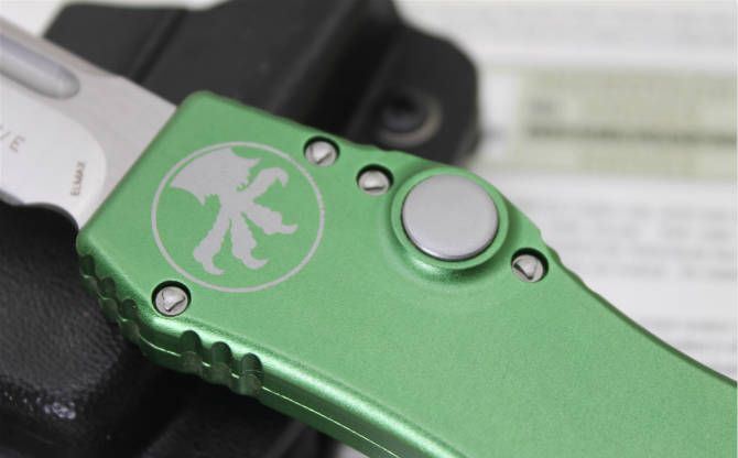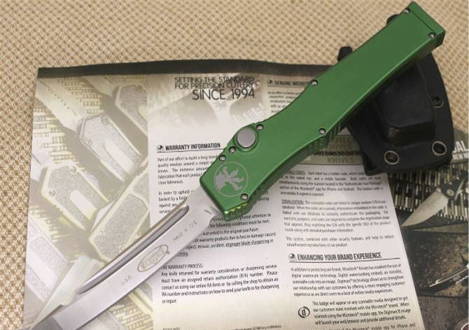 精仿微技术150-10超弹力直跳刀绿柄 全 长:27.4 CM 刃 材:D2钢 刃 长:10.6 CM 刃 宽:1.98 CM 刃 厚:0.43 CM 柄 材:铝合金 刀 型:直跳 锁 型:按钮锁 重 量:148.8克 附 件:Kydex鞘,说明书,彩盒 整刀用,CNC,电脑锣,线切割制作而成,手工,精密度非常高