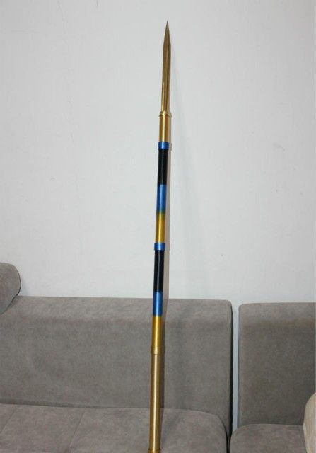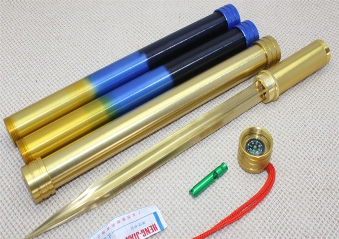 黄金版八一四棱刺炫彩柄加长版 收起全长:44cm 反接全长度:132CM 刃 长:30cm 刃 宽:2.1cm 柄 长:接上42cm 拆下12.5cm 刀 型:四棱刺 刃 材:5Cr15Mov 柄 材:土豪金色 刀 鞘: 全钢管 净 重:800克 毛 重:1050g 配止血贴+哨子+后盖帽带有指南针