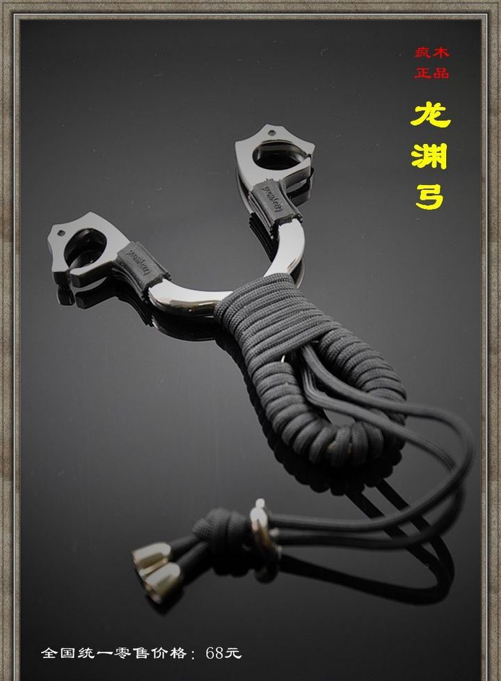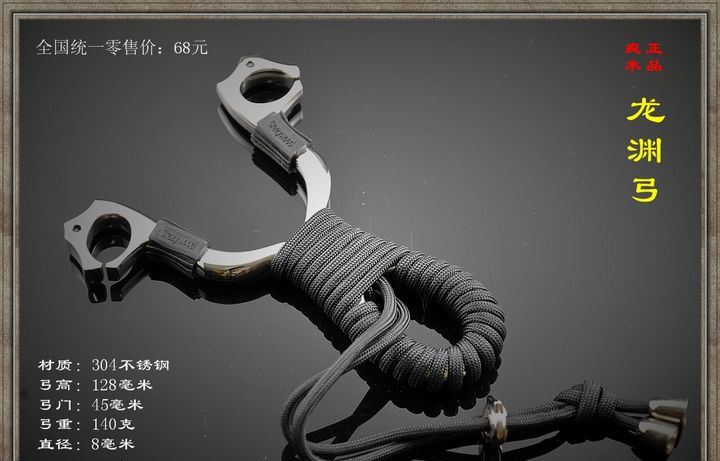 疯狂木头_龙渊弓 正品刀锋弓材质为高级304不锈钢,全镜面8k抛光,表面没有任何镀层。请玩家购买时请注意鉴别,正品落雁弓弓体中央有crazywood打标。 规格:弓高125mm,弓门内宽45mm,开口间隙1.5mm 材质:304高级不锈钢(极佳的抗锈抗腐蚀能力) 弓重:140克(裸弓) 厚度:8mm 产品特点: 1、弓门采用人体工学设计,提供了更舒适的持握手感。 2、标准的弓形适合165-190cm身高的弓友使用。 3、弹弓整体高抛光,达到8k镜面效果。