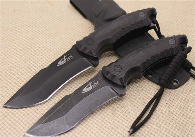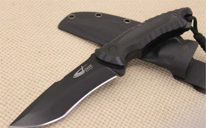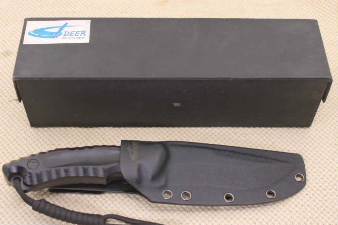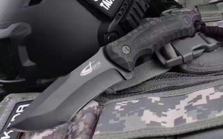 DEER神鹿直刀(黑钛、石洗) 全 长:24.5CM 刃 长:12CM 柄 长:12.0CM 身 最大宽度:3.6CM 刀 厚:0.6CM 刃 面:黑钛/石洗 刀 重:400克 毛 重: 650克(含k鞘) 钢 材: 8Cr13Mov 硬 度:56-58CHR 刀 柄:电脑锣G10防滑手柄,黑色 刀 套:K鞘