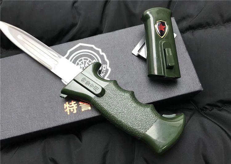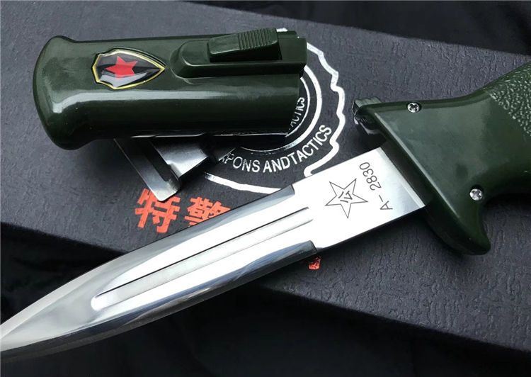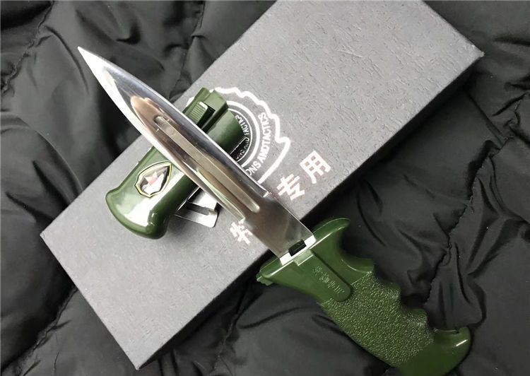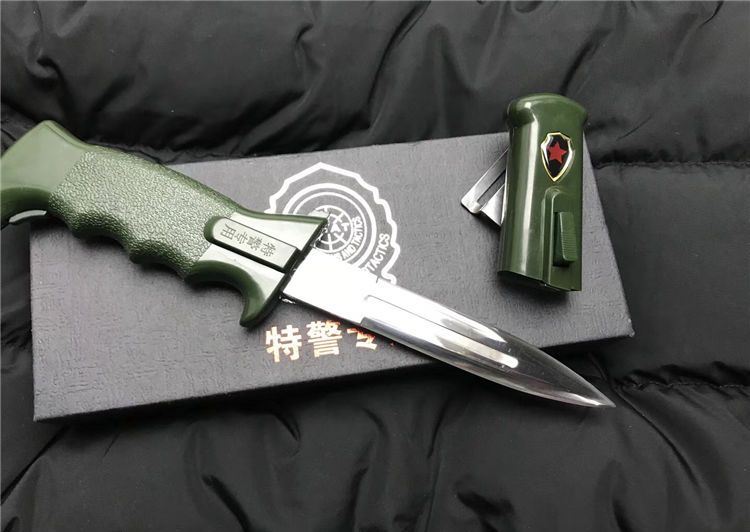 高仿特警专用伸缩弹簧佩刀 全长:24cm 刀身:13cm 刀刃:10cm 刃宽:2cm 厚:0.3cm 硬度:59度 钢材:9cr13 手柄ABS纤维 表面数控电脑锣加工超镜光 高档礼品盒 备注:每把刀带一个编码