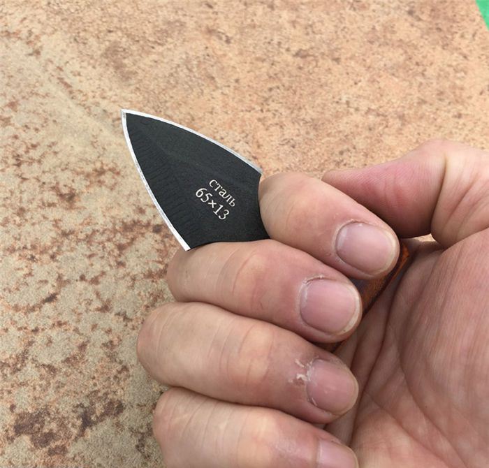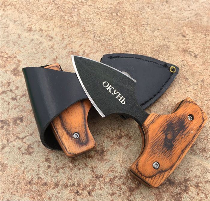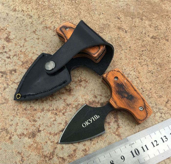 木柄黑刃小手刺 全长:8.5cm 刃长:5.5cm 刃厚:3.5mm 刃材:440A 硬度:57HRC 表面:磨砂 柄材:彩木 木柄小手刺,双刃,一体龙骨,小巧便携