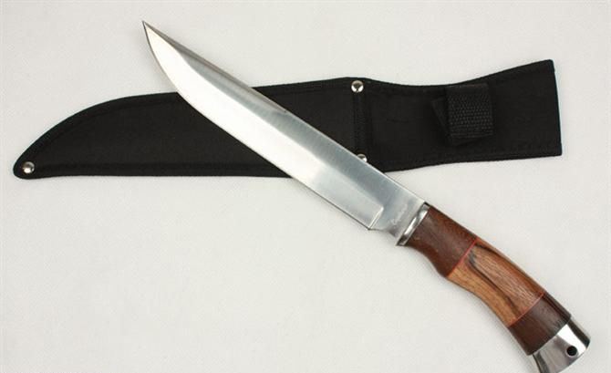 土耳其王者直刀 全长:33.5CM 刃长:21CM 柄长:12CM 刃厚:3.8MM 钢材:7Cr17 硬度:58 重量:300克 柄材:花梨木+钢头