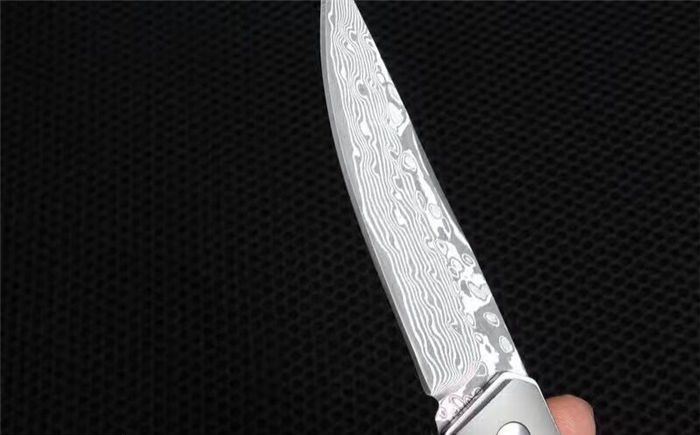 博克二代必杀折刀大马士革版 全长:213mm 刃长:89.9mm 柄长:123.8mm 硬度:60HRC+ 柄材:钛合金 刀夹:不锈钢 螺丝:不锈钢 结构:线锁 设计:BOKER 防滑FLIPPER快开+陶瓷滚珠轴承+钛合金柄+VG-10夹钢大马士革