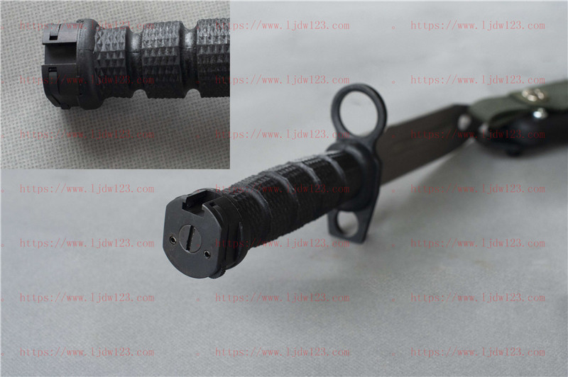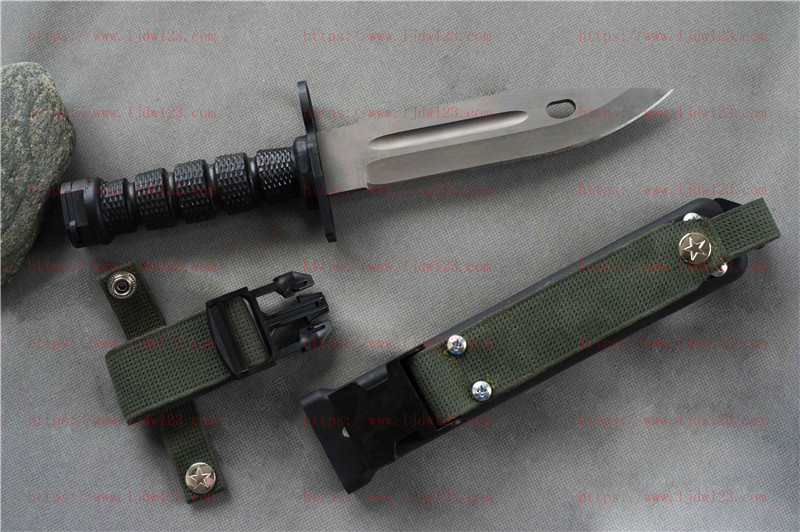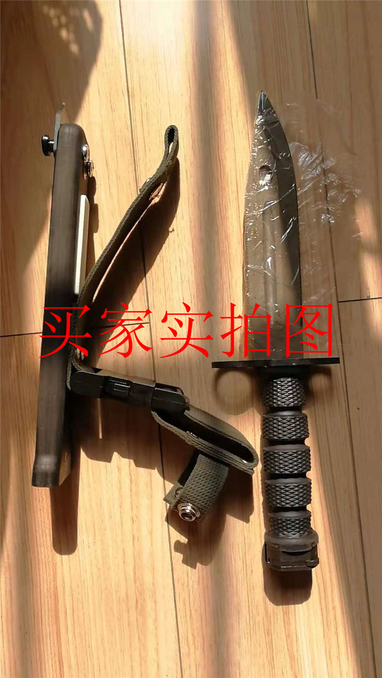 正品九五军刺 95军刺 全长:30.3cm 刃长:17.6cm 刀板厚度:6mm 连刀鞘总重:0.6kg 刃材:YG15钨合金钢 硬度:60+1