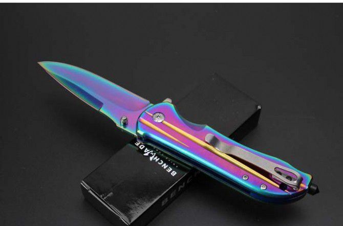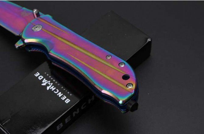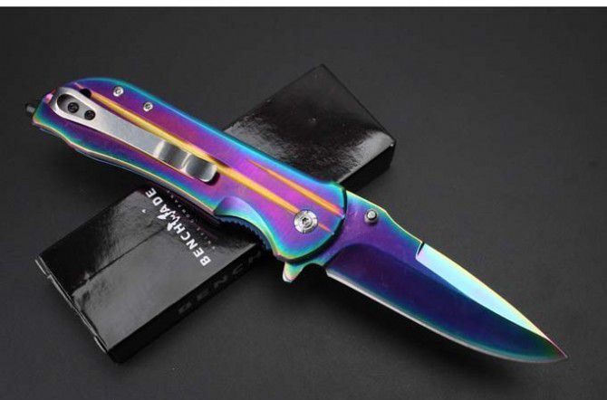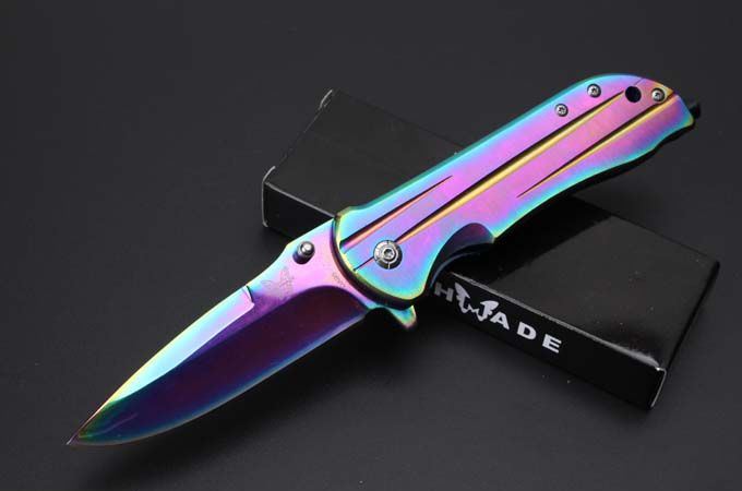 蝴蝶彩钛DA95快开折刀 全 长:208mm 刃 长:88mm 柄 长:122mm 刃 宽:28mm 刃 厚:3.0mm 刃 材:7Cr17Mov 重 量:225g (含包装) 硬 度:58HRC 表 面:彩钛 柄 材:钢柄 其 他:纸盒包装