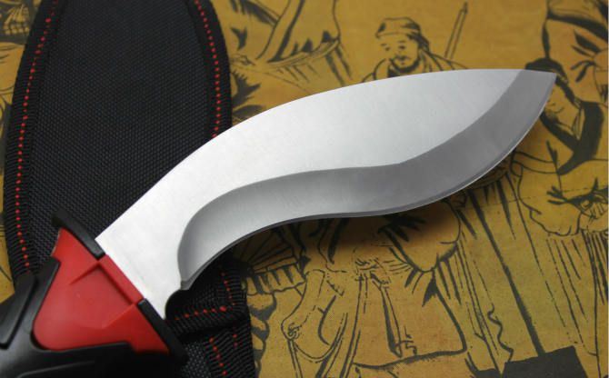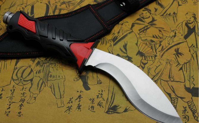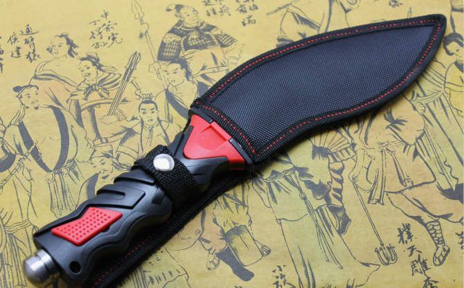红柄潜水刀狗腿弯刀砂光刃 全 长:30.6CM 刃 长:16CM 柄 长:14.6CM 刃 宽:4.5(最宽处) 刃 厚:0.3 刃 材:440C 硬 度:58HRC 刀 柄:橡胶 刀 鞘:ABS工程塑料 表 面:砂光 结 构:直通刀柄,结构牢固 净 重:400克(含刀套)
