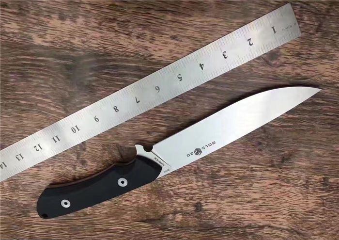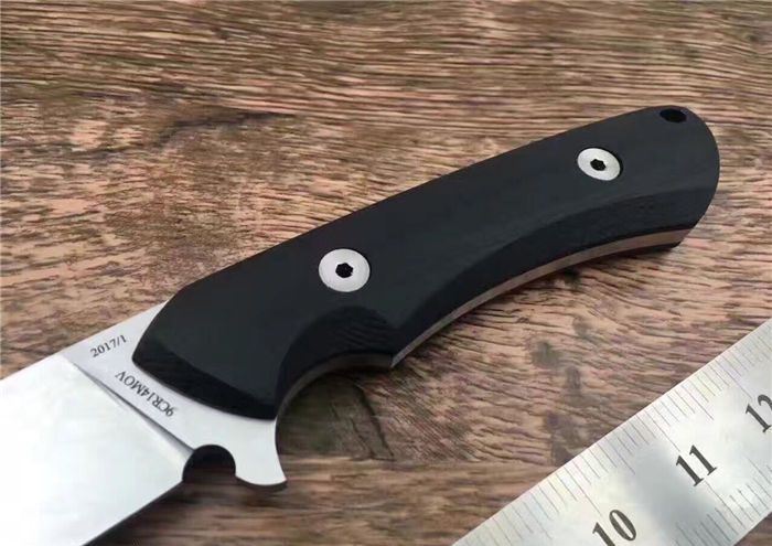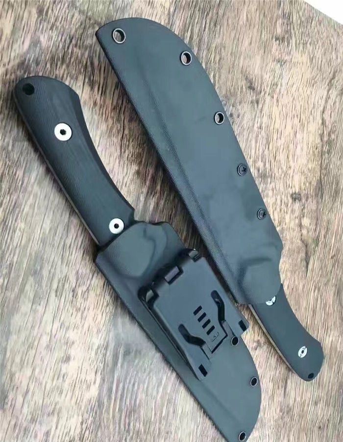 小鲁工黑狐直刀 刀材:9CR14MOV 硬度:59-60 全长:29.6CM 刃长:16.2CM 厚度:5.0MM 表面:钢本,石洗 柄材:黑色G10(3D成型) 鞘:K鞘+战术背夹